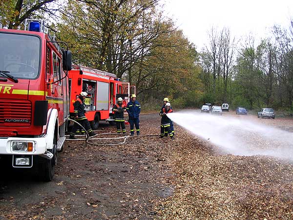 Das erste Löschfahrzeug rückte aus und fand auf dem ersten Parkplatz im Driftredder, beim Öjendorfer Park, einen ca. 60m³ großen Haufen mit